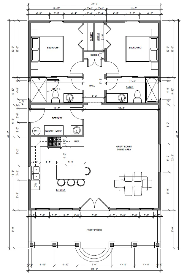 28’ x 40’ + 8’ Porch