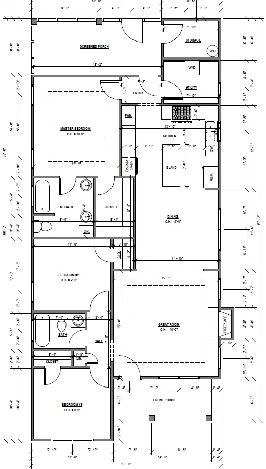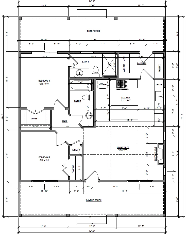 34’ x 30’ 2” + 16’ Front and Rear Porches