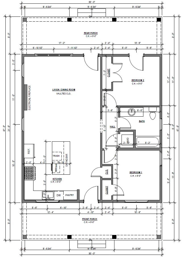 30’ x 31’ 8” + 16’ Front and Rear Porches